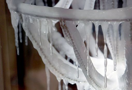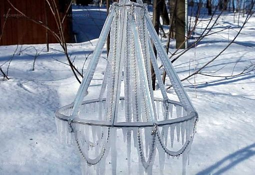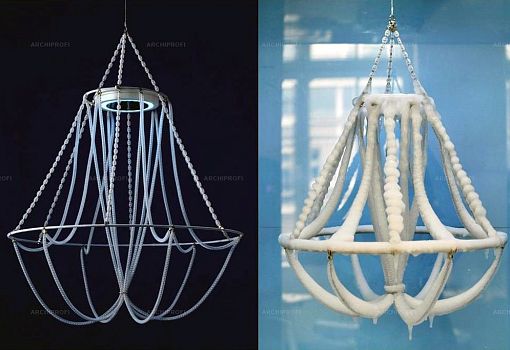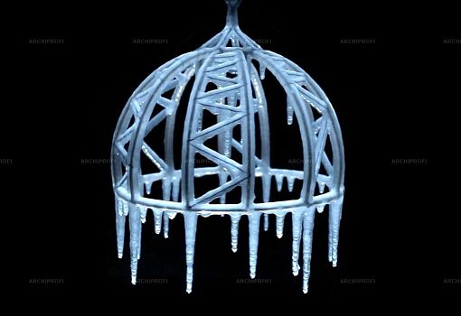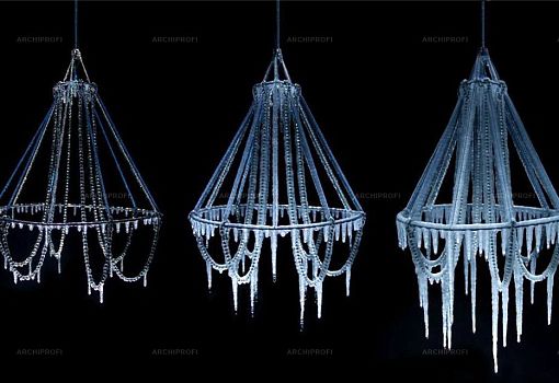 Ледяная люстра Polar Light – дипломная работа Артуро Эрбсмана (Arturo Erbsman), выпускника прошлого года парижской школы Ecole Nationale Supérieure des Arts Décoratifs (ENSAD). В обычной ситуации холод и плохая погода являются разрушителями материалов и конструкций, но молодой дизайнер сделал мороз своим союзником и даже более того – соавтором. Основа светильника выполнена из гибкого металла, обернутого мягким белым сетчатым материалом, главное назначение которого – удерживать воду в разных ее формах (снег, дождь, утренняя роса). В итоге, в зависимости от климатической картины дня, каркас постепенно оказывается покрытым слоем пушистого снега или льда, сверкающего под лучами солнца либо ночных источников света.