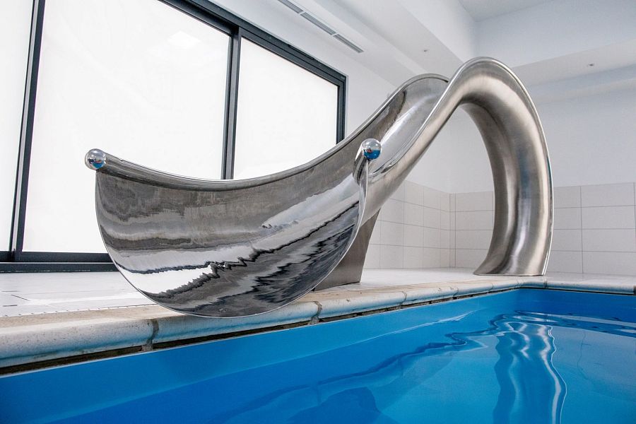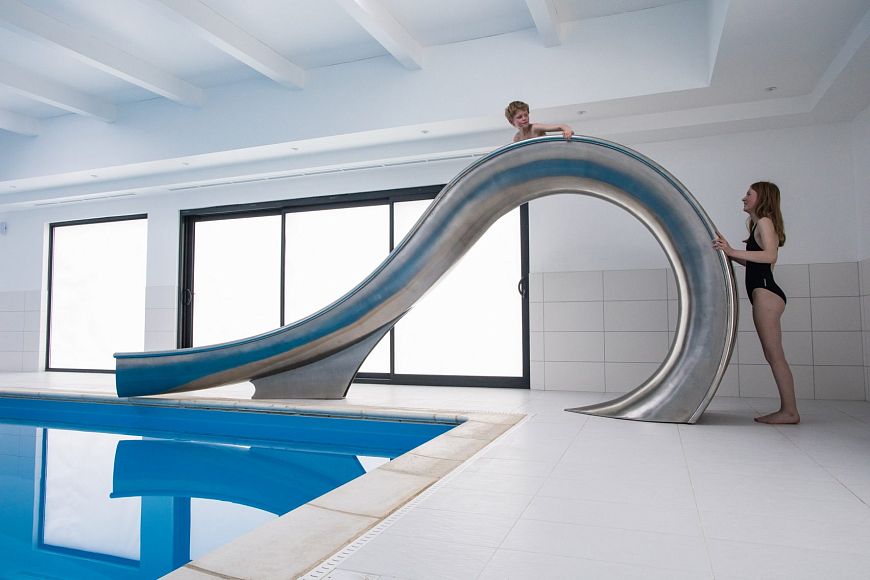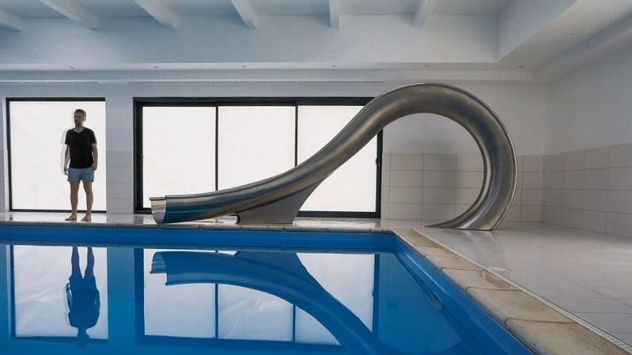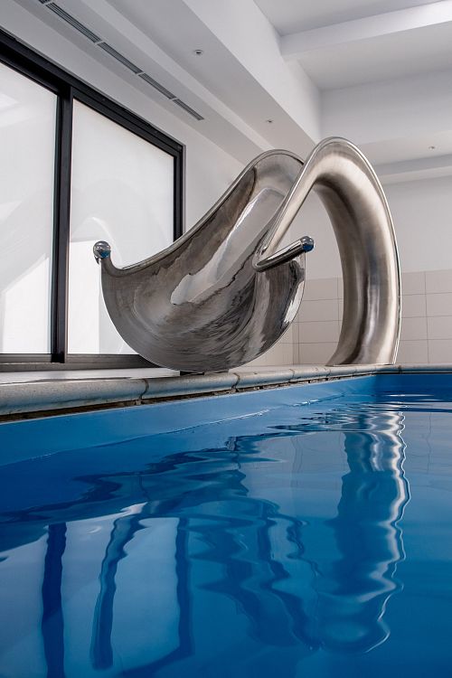 Говорят, в дизайне мелочей не бывает. Чтобы подтвердить эту мысль, специалисты студии Splinterworks спроектировали скульптурную водную горку, повторяющую форму волны перед тем, как она обрушится на берег. Предмет, напоминающий полноценный арт-объект, получил название Waha. Это термин серфингистов, которые окрестили так туннель из воды, внутри которого скользит спортсмен. Водный спуск изготовлен из нержавеющей стали. Стальные фрагменты были сформированы при помощи механического молота, а затем сварены между собой и отполированы до зеркального блеска. «Полированная нержавеющая сталь не нагревается на солнце так, как другие материалы, поэтому прикосновение обнаженного тела к горке не вызовет ожог», - говорят дизайнеры. Интересная особенность: на внутренней поверхности полотна легко можно установить диспенсеры для создания потока воды.