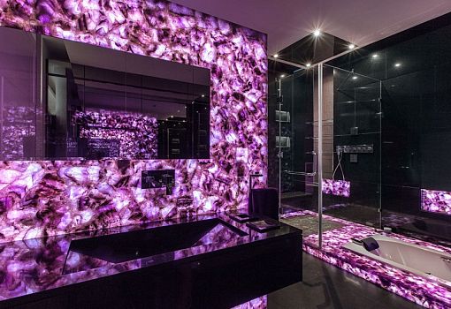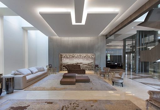 Во всей полноте особенности стиля контемпорари демонстрирует дом Al Saif Residence в Кувейте. Архитекторы бюро Roma International использовали оригинальные приемы вроде установки фасадных экранов из хаотично пересекающихся прямых – формы, которая «читается» как в экстерьере, так и в интерьерах. Особую роль в проекте играет интегрированная подсветка, которая не только акцентирует внимание на фасаде в темное время суток, но и становится основой дизайна. Например, в ванной, она придает выразительность и объем решенным в футуристическом духе стенам и полу.