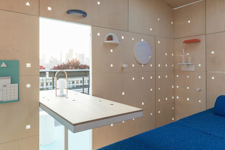 Мини-жилище состоит из двух модулей, покрытых перфорированной металлической оболочкой. В интерьере использованы приемы, позволяющие экономить пространство. К примеру, здесь есть складные столы и полки, поворачивающиеся фасадные панели, открывающие проемы для проникновения солнечного света и воздуха. В настоящее время в Шанхае строится поселение из 50 таких домов. Ожидается, что первые новоселы въедут в свои апартаменты уже в 2019 году.