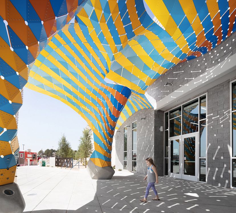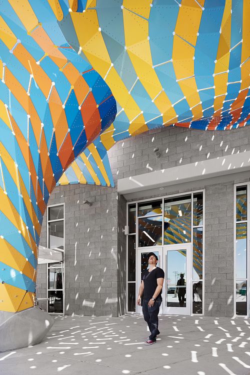 Нью-йоркская студия дизайна The Very Many спроектировала яркий навес над входом в развлекательный центр в Эль-Пасо (Техас).