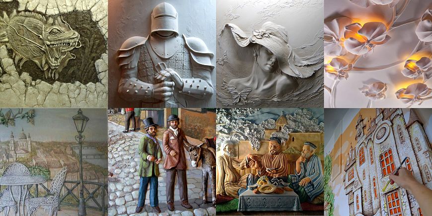 По-настоящему оригинально, красиво и выразительно, с помощью барельефа и художественной росписи, можно украсить интерьер любого стиля.