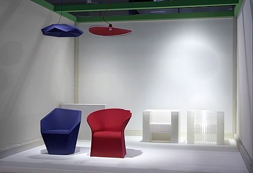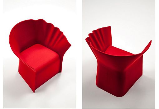 Японский дизайнер Дзюнпей Тамаки (Junpei Tamaki) привез на миланскую выставку Salone Satellite элегантную пару: изящную легкую «даму в красном» — кресло Dress и ее крепкого широкоплечего «кавалера» —  кресло Massive. Ключевые аспекты облика обоих предметов: асимметрия и насыщенный монохромный цвет. Плавные округлые изгибы «женской»  модели контрастируют с рублеными полигональными очертаниями «мужской».  «Как будто платье собралось складками от дуновения ветра», — так характеризует автор волнообразный рельеф, которым декорировано сбоку  дамское «одеяние».