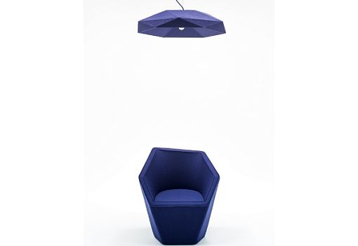 В комплект к «нарядам» Тамаки спроектировал и дополняющие их «шляпы» — подвесные потолочные светильники. В основе их конструкции, также как и у кресел, — фетр и металлический каркас. Очертания светильников тоже асимметричны, и их облик плавно видоизменяется в зависимости от угла зрения.