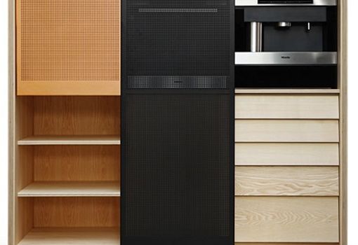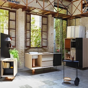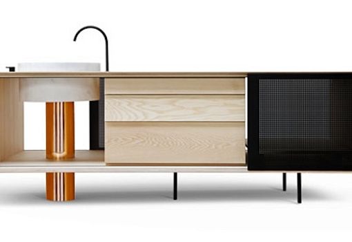 Функциональные мебельные «гибриды» для кухни создали дизайнеры испанского бюро MUT Design. Кухонный гарнитур состоит из нескольких элементов, для создания каждого из которых использовалась древесина ясеня, медь и мрамор. Коллекция модульных объектов интерьера делает кухню больше похожей на гостиную, благодаря выбранному дизайнерами формфактору.