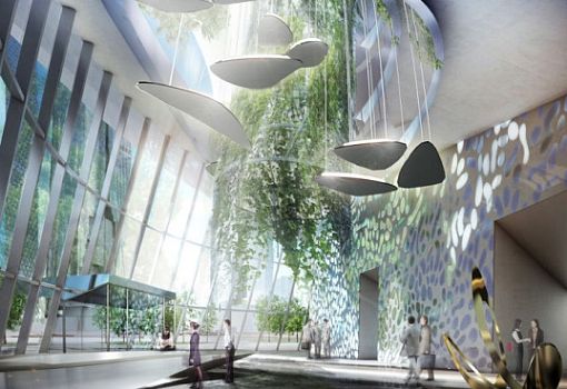 Австрийская компания CoopHimmelb(l)au взялась за проектирование башни Flying Garden Tower для района франкфуртского аэропорта. Сооружение в виде скрученного цилиндра, судя по 3D-изображениям, буквально парит в воздухе благодаря идущей по периметру серии опор. Сад, расположенный внутри динамичной конструкции, будет залит естественным светом. Башню планируется возвести с учетом местного климата, чтобы повысить эффективность естественной вентиляции и терморегуляции.
