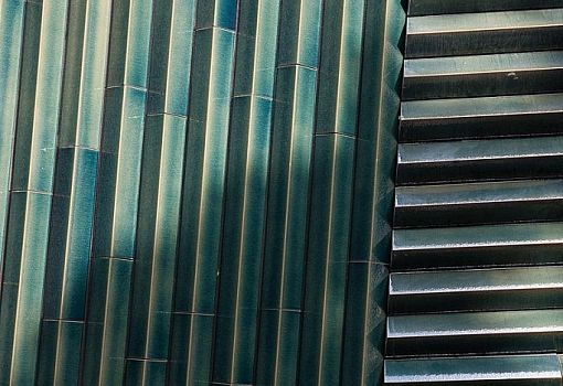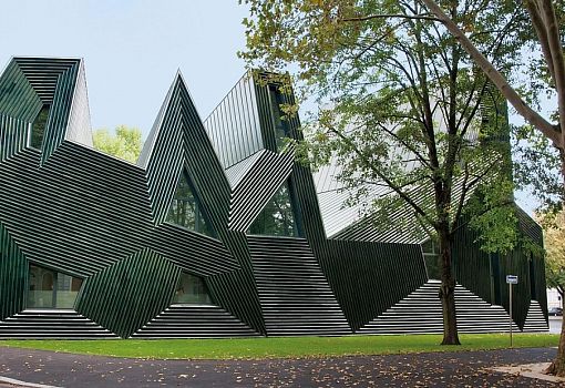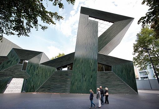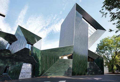 В Германии архитекторы бюро Hunter Douglas реализовали необычный проект еврейского общинного центра. Внутри него запроектированы офисы, две квартиры, образовательный центр, синагога и несколько многоцелевых пространств. Асимметричные объемы сооружения облицованы керамическими профилями угловатой формы, окрашенными в различные оттенки зеленого. Благодаря этому приему здание приобрело динамику, так как под различными углами и в условиях разного освещения можно наблюдать различные визуальные эффекты.