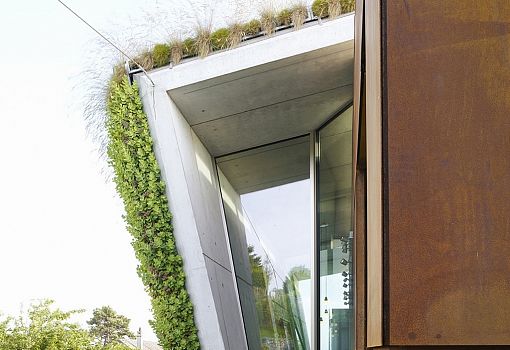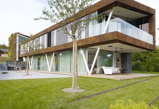 Швейцарская вилла Jewel Box Villa, разработанная китайскими дизайнерами и архитекторами design paradigms, отличается использованием экологичных источников энергии. Структурированная композиция взаимодействует с природой в зависимости от суточного изменения положения Солнца, геотермальной энергии и прочих видов возобновляемых ресурсов. Достигается это при помощи различных материалов, которые были использованы для отделки фасада. Например, западный выполнен из ПВХ.