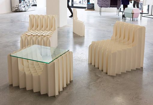 Молодой японский дизайнер Коджи Секита (Koji Sekita) делает мебель из бумажных «гармошек». Его коллекция Watching You на данный момент включает серию мебели для сидения различной «вместимости», от стула до диванчика-скамьи, плюс журнальный стол. Принцип изготовления очень прост: из специальной бумаги вырезается деталь, напоминающая по форме силуэт стула,  складывается гармошкой и стыкуется по вертикальным ребрам с точно такой же заготовкой. Ни клея, ни болтов – только простейший крепеж в виде зажимов-скрепок. И поскольку технология сборки изделия позволяет соединять вместе любое количество модулей, то предмет элементарно наращивается до желаемых габаритов. Легкий вес и простота сборки - дополнительные достоинства разработки.