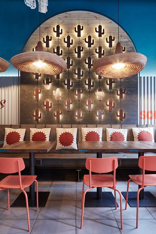 По-новому раскрылся тематический интерьер, созданный дизайнерами бюро Formafatal для пражской сети мексиканских закусочных.