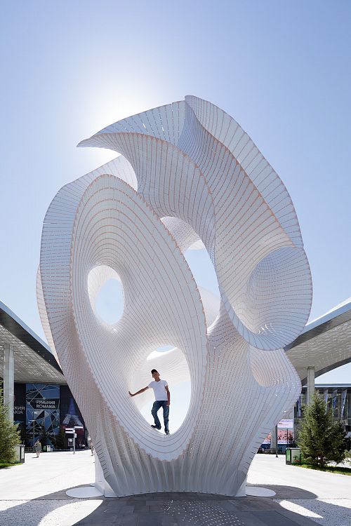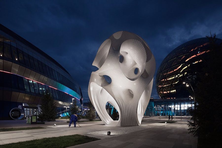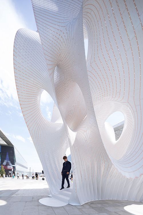 Архитектор Марк Форнс и его коллеги из бюро THEVERYMANY создали величественную самонесущую инсталляцию minima/maxima из тонкого (6 мм) алюминия для Астаны, столицы Казахстана.