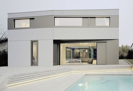 В Тюбингене (Германия) в прошлом году был реализован проект частного дома S3 Cityvilla. Архитекторы Steimle Architekten спроектировали здание площадью 2142,4 кв.м. Сооружение является структурой, независимой от среды и демонстрирует оригинальный взгляд на подвижность формы. Контрастирующие элементы фасада, интегрированная подсветка, многогранные объемы и открытые пространства - все это формирует динамичную композицию. Выполнено скульптурное сооружение из бетона с облицовкой фасадов алюминиевыми экранами.