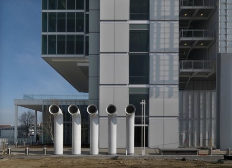 В Турине (Италия) находится башня, спроектированная бюро Renzo Piano Building Workshop. Сооружение высотой 166 м – это новый офис одной крупной компании. Концепция отличается сочетанием минималистских веяний с нотками индустриального стиля. Несмотря на масштаб, здание выглядит легко и динамично благодаря стеклу и алюминию, которыми облицованы фасады.