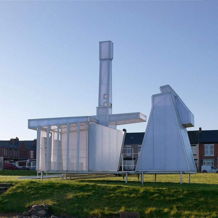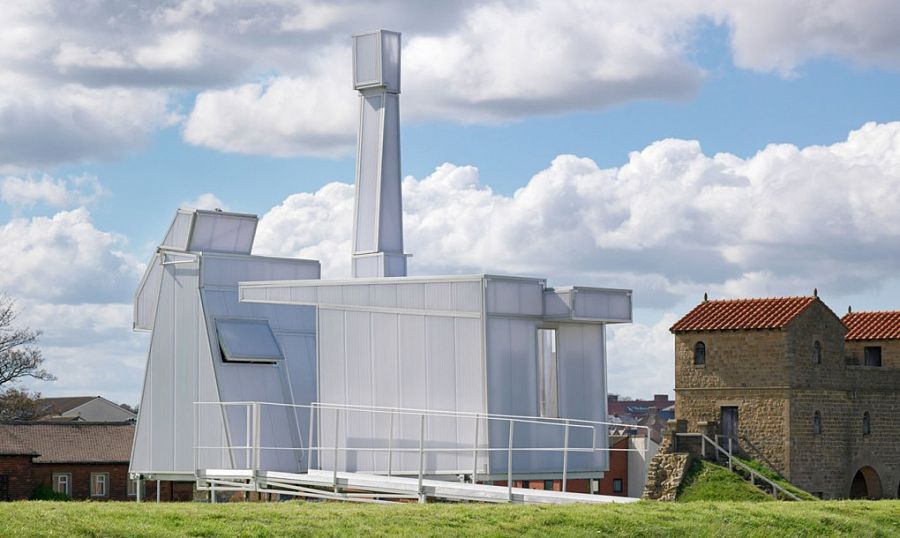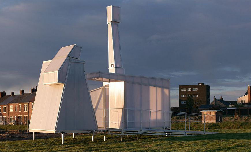 Минималистская структура, напоминающая белоснежный завод в миниатюре, спроектирована тремя архитекторами: Мэтью Бучером, Оуэном Уильямсом и Киреном Томасом Уордлом (Matthew Butcher, Owain Williams, Kieran Thomas Wardle).