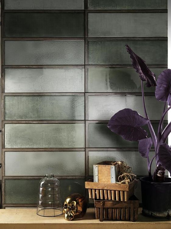 Diesel Industrial Glass - cила материала рассказывает о промышленной археологии. Вынесенные из обычного контекста, наружные стекла окон промышленных корпусов вписываются в интерьеры и становятся частью их оформления, как будто именно для этого они были созданы. Элементы объединяются, образуя с профилями из керамического материала панно, в которых могут присутствовать металлические вкрапления и кракелюр. Панно состоят из элементов с разной текстурой, создающих в совокупности очень интересный эффект.