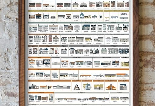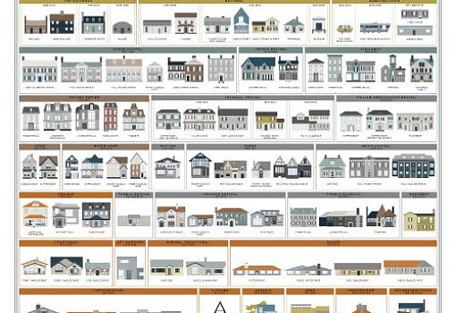 Для иллюстрации качественных видоизменений жилой архитектуры Соединенных Штатов с течением времени дизайнерами Pop Chart Lab был создан плакат. Диаграмма отображает череду изменений, произошедших с архитектурой в период с XVII века и до 90-х годов прошлого века. В рамках проекта рассмотрено более 120 сооружений, которые распределены по семи категориям и 40 подкатегориям. В качестве основы для плаката были взяты данные архивов.