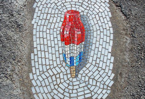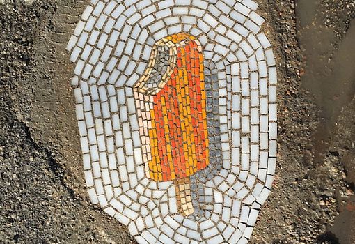 Художник из Чикаго Джим Бакор (Jim Bachor) заполняет выбоины на дорогах цветной мозаикой, превращая их в социальные арт-объекты. Он делает это, чтобы привлечь внимание властей к проблеме. Каждую мозаику он изготавливает вручную в своей мастерской, а затем переносит на место. Темой своего уникального арт-проекта Джим выбрал различные виды мороженого. По словам самого художника, он создает мозаику в трещинах на асфальте потому, что таким образом можно говорить о современных проблемах на языке древности. Эта работа удивляет зрителя, бросая вызов давним представлениям о том, какой должна быть мозаика.