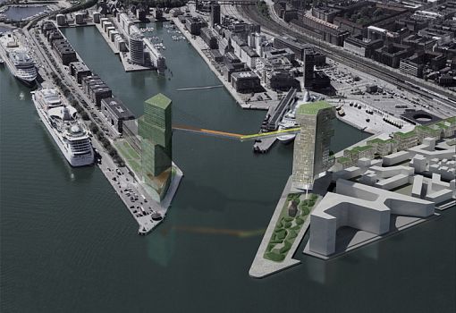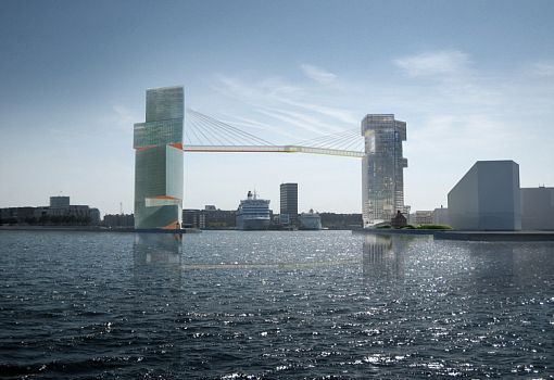 Новые «ворота» (высотный комплекс) для гавани Копенгагена Copenhagen Gateway были спроектированы Стивеном Холлом еще в 2008 году. И вот, наконец, в следующем году начнётся строительство. На каждой из сторон гавани будет построена офисная башня (L и М), развернутые в разные стороны. «Форштевень» башни Langelinie, где будет обустроена общественная площадка, направлен в сторону моря. На нижних этажах высотки, как ожидается, будут запроектированы многочисленные кафе и рестораны. Главный фасад башни Marmormolen обращен на город. Оба здания на высоте 65 метров над уровнем моря будут соединены мостом, состоящим из двух отдельных частей, которые символизируют дружеское рукопожатие. Нижняя сторона моста окрашена в яркие цвета: оранжевый для Langelinie и желтый для Marmormolen.