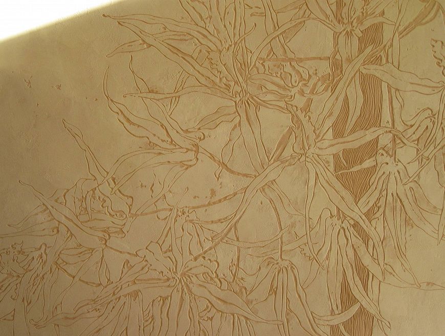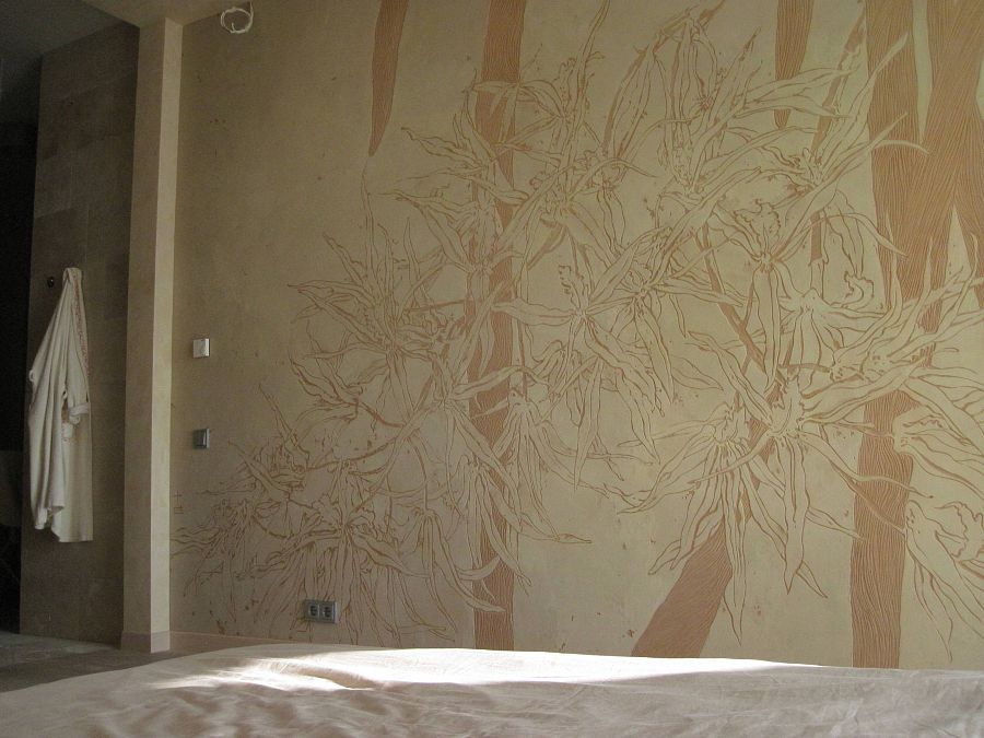 На наш взгляд, сегодня в современном интерьере может быть актуальным и интересным использование декоративного решения для стен «сграффито» (sgraffito). Были проведены эксперименты, связанные с возможностью применения технологии в различных средах, включая навесной вентилируемый фасад для частной застройки. Разработан новый состав штукатурки, позволяющий применять её в более комфортном режиме, нежели пять веков назад. Реализованы несколько проектов сграффито в «новом прочтении», а именно - в жилом пространстве гостиной и спальной комнаты. Со слов заказчика, «теперь, видя завершённую работу, мы не предполагаем, что можно оформить пространство как-то иначе». Очень приятно слышать положительные отзывы о выполненной работе!