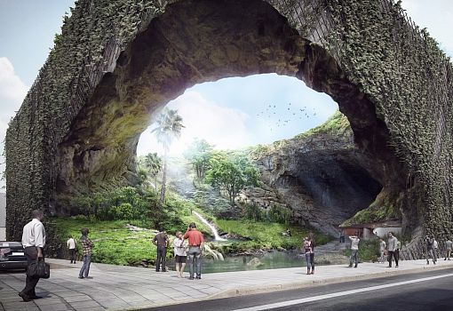 Музей истории коренных народов Филиппин площадью 9000 квадратных метров, спроектированный японской фирмой Kengo Kuma & Associates, будет расположен в столице Филиппин, Маниле. На идею создания музея в форме пещеры архитекторов натолкнула история островов периода неолита. Архитекторам удалось органично вписать кусок природы с водопадом, прудом, а также тропическими растениями, вьющимися по фасаду, в объем здания музея. По словам создателей, это попытка объединить природу и историю в условиях городской среды. Им хотелось построить объект, отличный от большинства традиционных музеев – закрытых коробок.