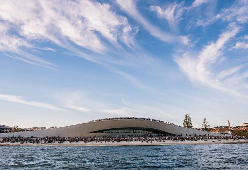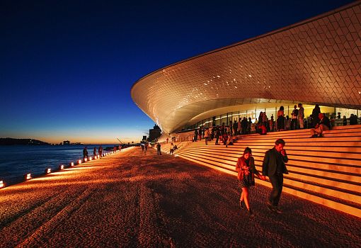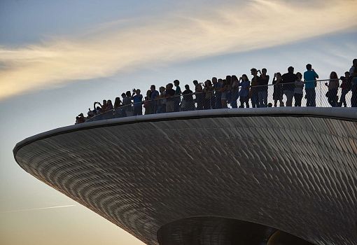 На берегу реки Тежу (Лиссабон, Португалия) вырос Музей искусства, архитектуры и технологии (MAAT), спроектированный британской студией Amanda Levete Architects. Структура напоминает волну, идущую по глади реки, и сходство усиливает фасад, созданный из 15 тысяч плиток мозаики, которые переливаются на солнце. Крыша здания доступна для посещения, а общая площадь территории  - 3,8 га. Свою работу музей начал с открытия триеннале TheFormofForm.