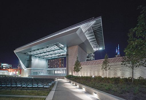 Один из самых музыкальных городов США, Нашвилл, как оказалось, не имеет концертного зала в центре. Исправить эту оплошность удалось архитекторам Hodgetts + Fung. На площади в 14 935 кв.м. будет построен концертный зал, рассчитанный на 6500 зрителей. Удивительно, но лейтмотивом проекта стал гитарный усилитель Gretsch 1962 года – единственная форма, которая смогла убедить мера города в необходимости строительства. Структурно амфитеатр состоит из бетонного основания и стальной структуры, покрытой консолью кровли из нержавеющей стали.