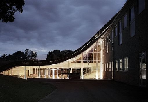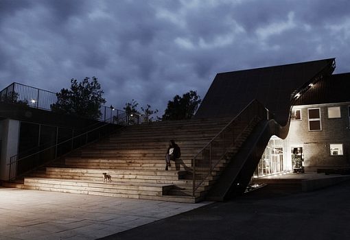 Кровля, выполненная в виде волнообразной поверхности, буквально вырастающей из лестницы – это часть Центра культуры Mariehøj (Дания). Бюро WE Architecture создало оригинальную динамичную композицию, интегрировав ее в окружающий зеленый ландшафт. Многофункциональное пространство иллюстрирует сочетание традиционных форм и смелых нетривиальных решений. В нем предусмотрены различные зоны для посетителей.