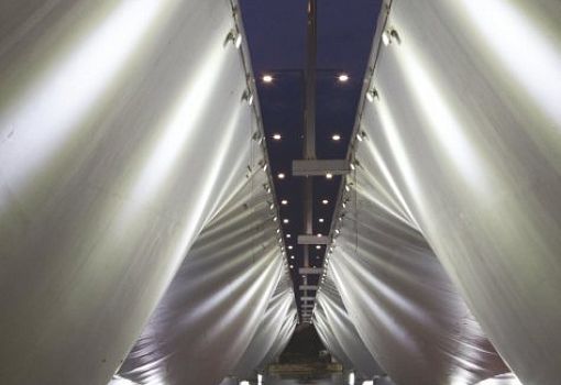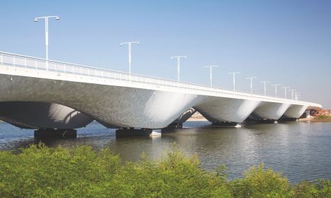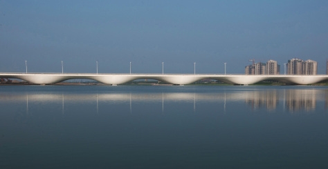 Волнообразная конструкция нового моста в Тяньцзине (Китай) связала части города, разделенные заливом. Мост насчитывает в длину 460 метров и состоит из нескольких 54-м элементов в виде перевернутых бетонных куполов. Таким образом, произведение архитектора и инженера Марка Мимрама обрело динамичную и легкую форму, передавая дух и стремление к совершенству.