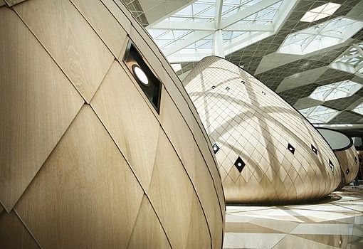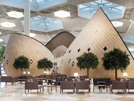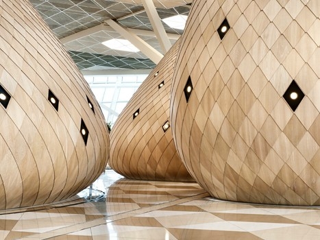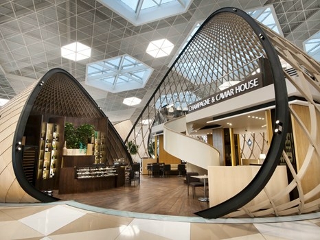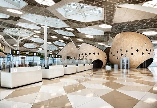 В конце прошлого года в Баку (Азербайджан) открылся новый терминал международного аэропорта имени Гейдара Алиева, спроектированный турецким бюро AutobanStudio. Авторам удалось передать национальное своеобразие Азербайджана при помощи 16 объемов-павильонов, формирующих центральную часть внутреннего пространства. Они отражают особенности национальной архитектуры и декоративно-прикладного искусства. Материал – американский светлый дуб.