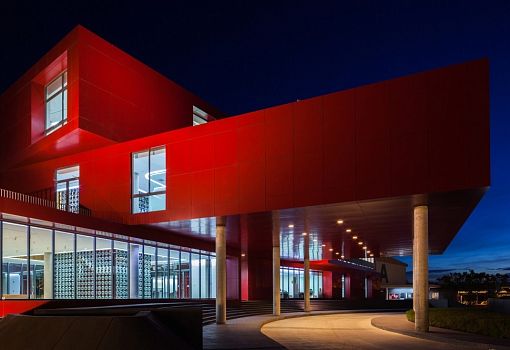 Ресторанный комплекс СК5 в Таиланде, созданный Agaligo Studio, состоит из параллелепипедов, установленных друг на друга с кажущейся небрежностью. Шесть темно-красных консольных объемов смещены относительно друг друга по вертикали. Композиция призвана отразить динамику этого вида бизнеса. Комплекс включает в себя рестораны, офисы компании и музей кулинарной направленности.