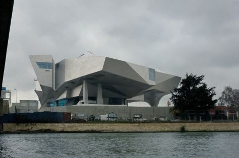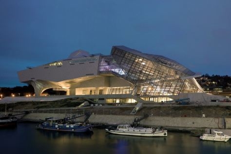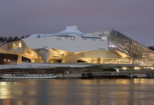 В Лионе (Франция) реализован один из наиболее значимых деконструктивистских проектов бюро COOP HIMMELB(L)AU - Musée des Confluences. По форме объект напоминает футуристический межпланетный корабль, приземлившийся на окраине города. Здание музея поделено на две части: полностью остекленный «кристалл» и белоснежное непрозрачное «облако». Аморфное «облако» представляет собой сочетание многогранных, сложных геометрических объемов и консольных выносов на многочисленных опорах. «Кристалл» визуально проще и тверже, он характеризуется наличием воронки, с помощью которой осуществляется взаимосвязь архитектуры с интерьером. Завораживающее сооружение занимает около 21000 кв.м., причем «кристаллическая» часть предназначена для проведения больших мероприятий.