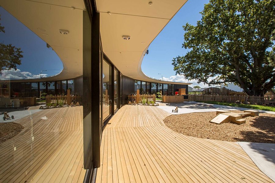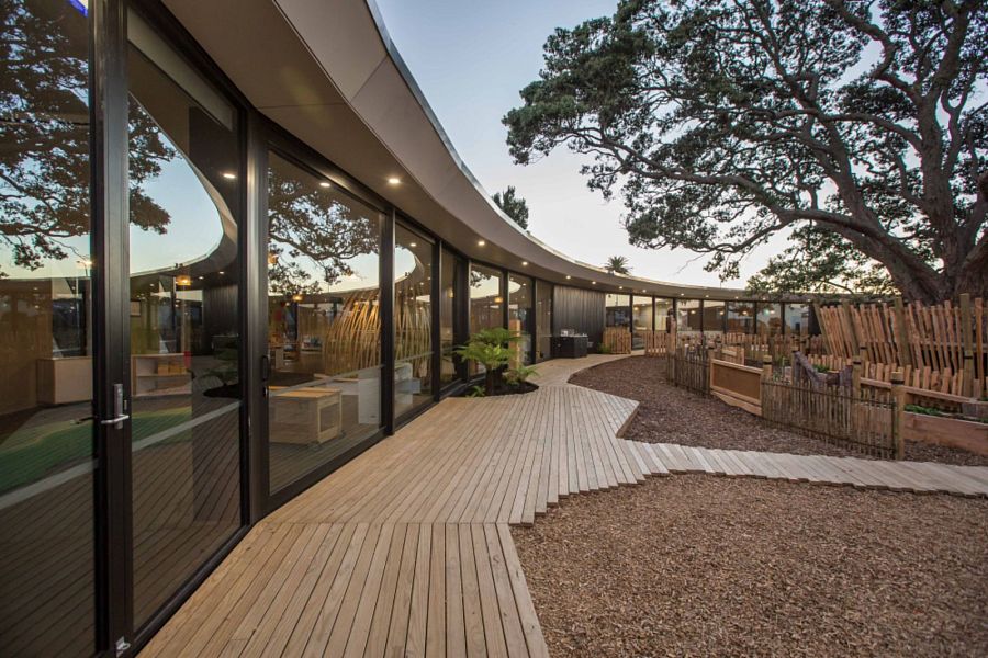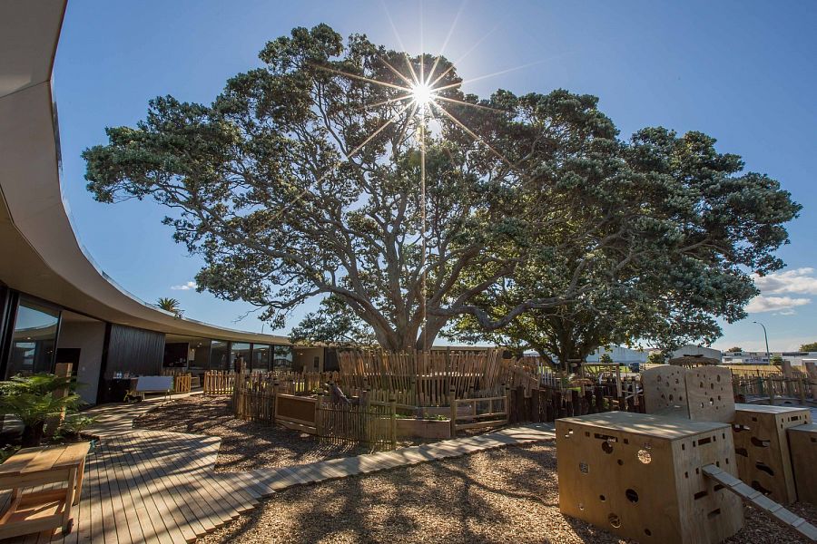 Уникальный инновационный центр по уходу за детьми удалось создать бюро Collingridge и Smith Architects (UK) Ltd в Окленде (Новая Зеландия). Проект этого детского сада объединяет духовные и культурные ценности Новой Зеландии. А «завертелось» все вокруг двух великолепных деревьев, охраняемых государством, и долгое время мешавших потенциальным застройщикам.