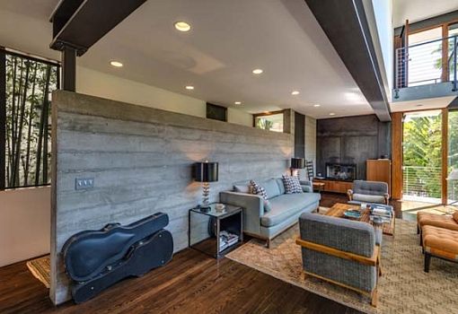 Фасад дома 2007 года постройки обновила художница Нэнси Монк. Бетонная конструкция от R&D Architects приобрела яркую динамичную окраску и яркие элементы облицовки. На площади в 1067 кв.м. эклектичный дизайн интерьера демонстрирует контраст белых стен и потолков с деревянным полом, индустриальные, модернистские и ретро-мотивы. Калифорнийский дом окружен буйной растительностью, которой тоже уделено место в проекте.