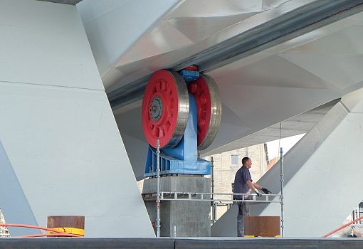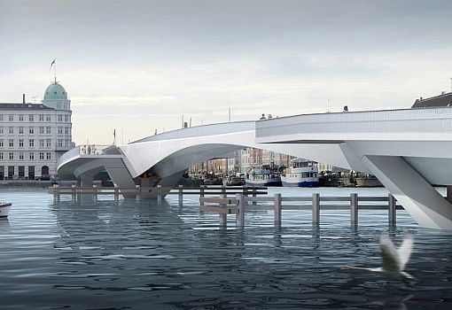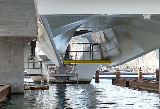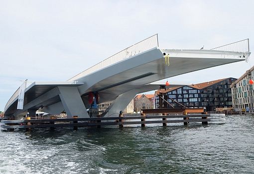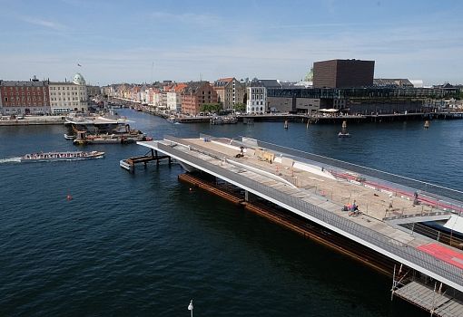 Новый мост для пешеходов и велосипедистов в Копенгагене близок к завершению. Открытие его планируется уже в этом году. Над проектом работают архитекторы из Studio Bednarski и инженеры-мостостроители Flint & Neill, которые были выбраны еще в октябре 2009 года по результатам конкурса. Мост общей длиной 180 м и шириной 8 м является ключевым компонентом структуры, которая свяжет две части Копенгагена, разделенные портом. Для нового моста используется уникальный раздвижной механизм с движущимися платформами, установленными на кованых дисках, каждый из которых 1,8 метра в диаметре. Тестирование механизма началось в августе. Низкий профиль моста и минимальное ограждение открывают чудесные виды на гавань: люди могут стоять на смотровых площадках прямо на краю судоходного канала, даже когда мост открыт. Кажется, что корабли проходят буквально на расстоянии вытянутой руки.