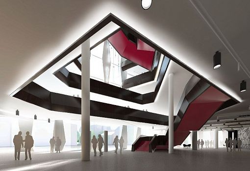После победы в конкурсе в прошлом году бюро Sheppard Robson получило разрешение на строительство общественного центра «Хаунслоу» в западном Лондоне на участке площадью 16 000 кв. м.Новый объект будет отличаться необычной архитектурной формой. Главный фасад будет отделан блестящими панелями, изготовленными из анодированного алюминия и обрамляющими большие окна. Угол наклона и ширина панелей варьируются, обеспечивая максимальное естественное освещение и снижая энергопотребление. Семиэтажная структура включает общественные помещения, в том числе публичную библиотеку, офисы и зал для собраний.
