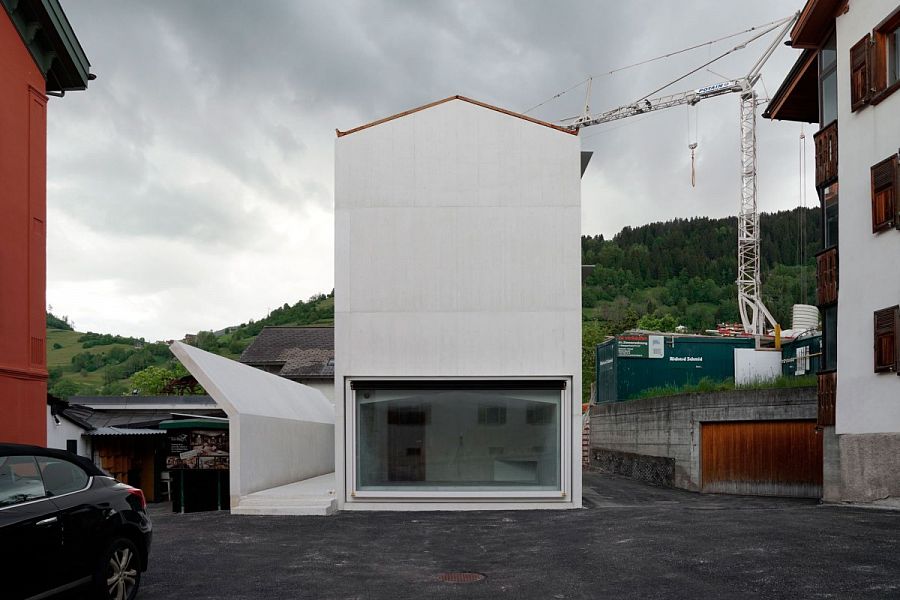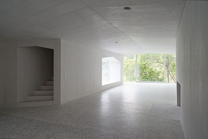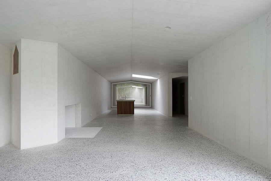 Дом House in Laax от Валерио Олджати (Valerio Olgiati) визуально связывает улицу и внутренний двор. Все благодаря коридору с большими застекленными проемами, вокруг которого и выстроен концепт.