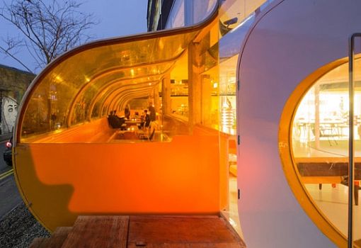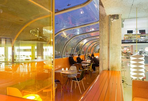 Хосе Сельгас и Лусия Кано в свойственной им манере реконструировали офис одной из лондонских компаний. Получилось гибкое и функциональное пространство на двух этажах, которое поделено на отдельные объемы, способные разместить от 5 до 20 офисных работников. Однако наибольшее внимание привлекает акриловый, ярко-оранжевый «пузырь», то есть, скругленный объем, отделенный от общего пространства перегородкой. Этот зал предназначен для проведения совещаний, для чего имеется U-образный стол. В зависимости от функциональных задач интерьер совещательной комнаты легко трансформируется при помощи мобильных перегородок.