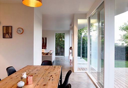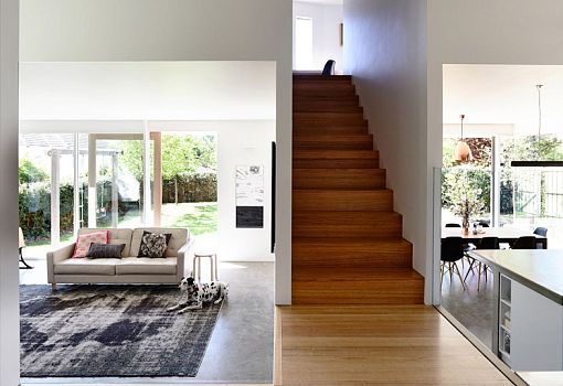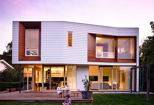 Бюро из Тасмании Preston Lane Architects реконструировало частный дом на окраине города Хобарта, чтобы обеспечить больше места для растущей семьи и улучшить пространственную связь здания с садом. Два этажа дома контрастируют друг с другом. На нижнем уровне запроектирована гостиная, открывающаяся в сад, из которой можно выйти прямо на газон; обеденная зона объединена с площадкой для отдыха и принятия солнечных ванн. Большие стеклянные раздвижные двери создают ощущение абсолютной открытости пространства. В то же время верхний уровень, наоборот, более закрытый. И неслучайно, ведь на втором этаже располагаются спальни и личные комнаты членов семьи. Фасад верхнего этажа облицован натуральным деревом; окна спален заглублены в тело фасада, а рамы ниш скошены.