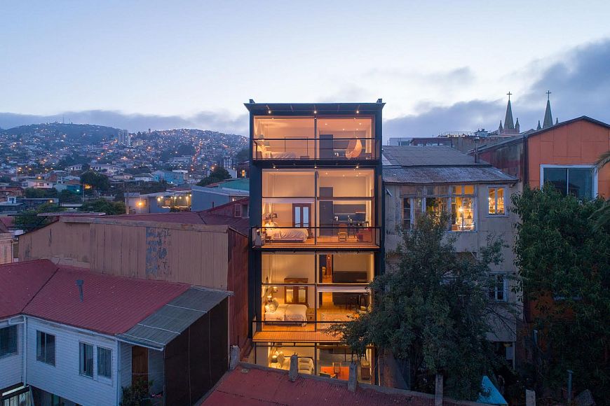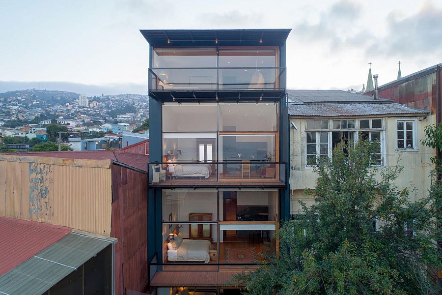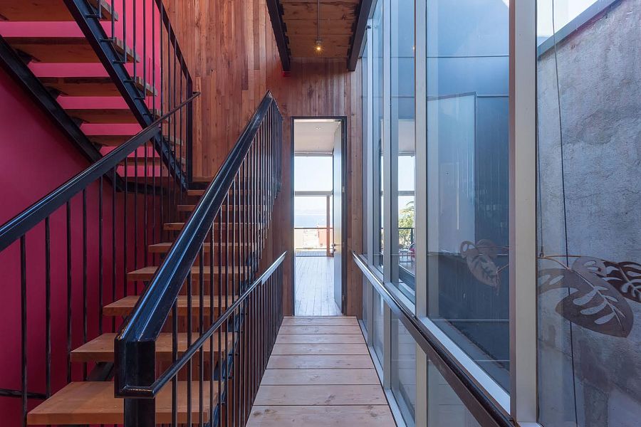 Внутри постройки основными образующими пространство элементами стали металлическая лестница и патио. Все комнаты отеля связаны переходами над внутренним двором, ведущими к лестнице. Для отделки архитекторы выбрали натуральную древесину. К примеру, межкомнатные перегородки выполнены из дубовых панелей.