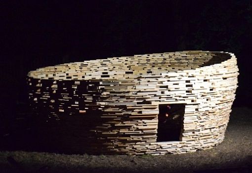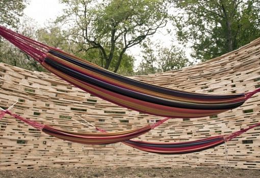 Архитекторы бюро Beyond Architecture Group (BAG) из Рима разработали экспериментальную концепцию на грани архитектуры и арта. Из 120 старых деревянных паллет выстраивается кольцо с хаотично расположенными отверстиями, внутри него натягиваются гамаки. Временная обсерватория под открытым небом готова!