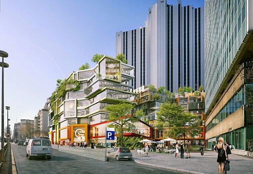 Созданый в начале 1970-х годов по проекту французского архитектора Пьера Дюфо, квартал в 14-м муниципальном округе Парижа стал одним из крупнейших городских проектов того времени. Его отличительная особенность – четкая вертикаль 30-этажной башни отеля Pullman. Однако с течением времени комплекс не смог адаптироваться к изменяющимся потребностям города, в результате чего превратился в замкнутый автономный блок, отрезанный от городской инфраструктуры. Бюро MVRDV взялось за реконструкцию квартала. Одна из изюминок этого проекта - каталог сменных фасадных элементов, которые помогут оперативно реагировать на изменения урбанистической среды в течение ближайших лет. Комплексу предстоит серьезная внутренняя реорганизация. Значительно расширятся торговые площади, появятся дополнительные офисные помещения, социальное жилье, детский сад, конференц-зал, а библиотека будет модернизирована.