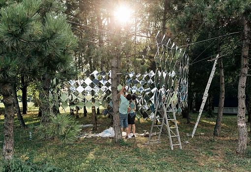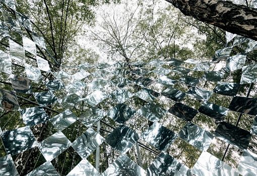 Оказавшись внутри павильона венгерской студии Nomad, установленного на Дунайском острове в Австрии, где проходил традиционный фестиваль Sziget, посетители могли почувствовать себя в центре громадного лабиринта-калейдоскопа. 1200 ромбовидных зеркальных панелей, развешанных в лесу на площади около 25 кв. м, создают неоднозначное впечатление: непривычно, загадочно, странно и даже несколько раздражающе. Дизайнеры вдохновлялись камуфляжем, использовавшимся во время Второй мировой войны для того, чтобы маскировать от противников военные корабли.