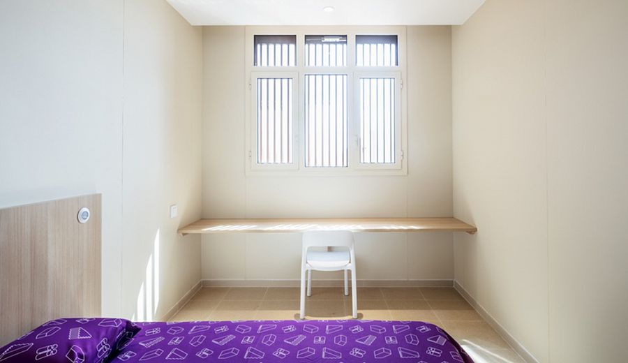 Рисунки, созданные дизайнерами, напоминают пиктограммы или переводные картинки, «героями» которых стали преимущественно архитектурные элементы и детали неоготического здания монастыря. Причем эти пиктограммы использованы не только в декоре стен или прозрачных перегородок, но и в тканевых паттернах (шторы, постельное белье, обивки). То есть, речь действительно идет о визуальной айдентике. Интерьер центра разделен на жилые блоки. В каждом из них три спальни, гостиная, столовая, кухня, ванная комната и кабинет социального либо медицинского работника. В блоках для детей авторы использовали теплую цветовую гамму для пиктограмм, а в блоках для подростков – более четкую, холодную, темную.