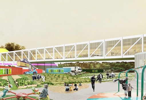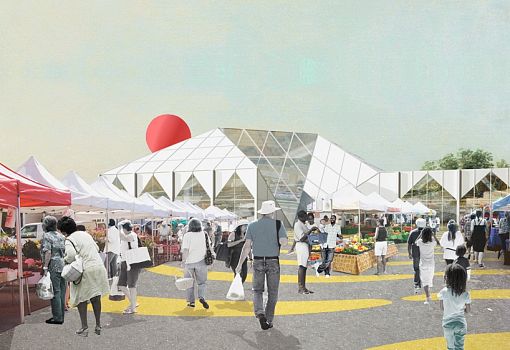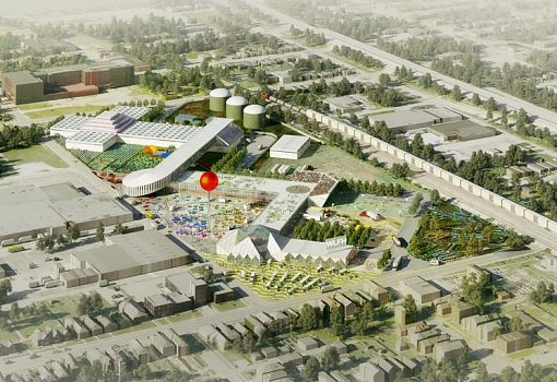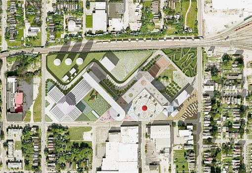 Интересный проект разработан международной архитектурной фирмой ОМА для города Луисвиля в штате Кентукки (США). На его западной окраине, на площади около 97 кв. км, планируется создать Генеральный пищевой порт, включающий полную цепочку централизованной системы выращивания, продажи и распределения продуктов питания для местных фермеров. Этот объект должен вдохновить других производителей и потребителей примером плодотворных отношений между архитектурой и продовольственной отраслью. Порт будет построен на месте бывшего табачного завода. Его дизайн объединяет несколько ключевых программ, которые обеспечивают все этапы пищевой цепи, в том числе кухню-инкубатор, городское хозяйство, переработку, а также программы по взаимодействию с общественностью: классы, показательные фермы, местные магазины. Открытые пространства включают рыночную площадь, «съедобный» сад и площадку для отгрузки продукции. Проект предполагает возможность дальнейшего систематического расширения. В этот проект инвесторы планируют вложить 50 млн. долл. инвестиций, он принесет около 200 новых рабочих мест. Ожидается, что Пищевой порт начнет работать в конце лета 2015 года.
