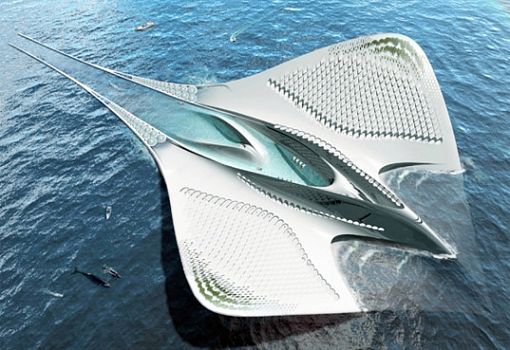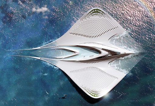 Французский архитектор Жак Ружери в очередной раз подтвердил делом свою любовь к морю. На этот раз он представил концепцию плавающего исследовательского города, который способен дать приют 7000 исследователей. Сходство с морским скатом добавляет композиции City of Mériens изящества и динамики. Сооружение задумано как автономное и безопасное для окружающей среды.