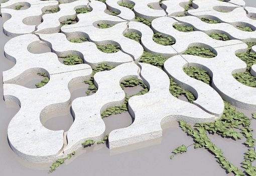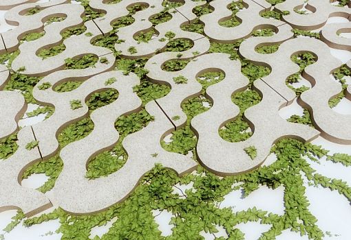Разработанная дизайнером Ежи Добжаньски (Erzy Dobrzański) тротуарная плитка Stream Line не прячет под собой траву, а выступает вместе с ней единым ансамблем. Это модульная  система, элементы которой позволяют составлять разнообразные композиционные решения. Органическая форма модуля была позаимствована автором у извилистых речных русел. Stream Line можно использовать в комбинации не только с травой, но и с другими видами естественного природного покрытия — песком, мхом, водой, галькой и т.п. Разработка была удостоена одной из престижных польских наград — Top Design Award 2013.