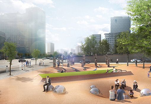 Мадридское архитектурное бюро Daniel Valle Architects представляет амбициозный проект парка культуры Sejong-daero – это интересная разновидность публичного пространства в Сеуле (Южная Корея). Общественное пространство расширит возможности для культурного отдыха горожан. Среди целого ряда особенностей проекта наиболее любопытной является следующая: поверхность площади будет изготовлена из мягкой резины, полученной путем переработки старых телефонных футляров. В подземной части парка основную площадь займет многоцелевой зрительный зал. В целом проект Sejong-daero демонстрирует свежий взгляд на общественное пространство как таковое.