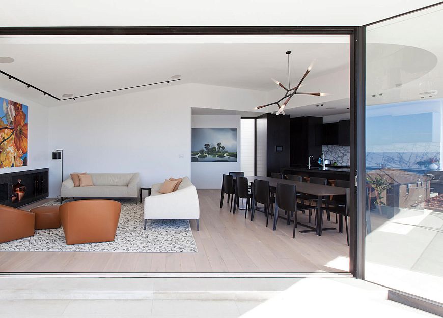 Особняк имеет «перевернутое» (по сравнению с традиционным) расположение комнат. Основные жилые помещения расположены на верхнем этаже, чтобы хозяева могли любоваться видами океана. Потолки в этих комнатах тоже нестандартные из-за использования пространства крыши. Г-образная форма дома образует центральный двор с бассейном. «Приятным бонусом» двора является его открытость солнцу и одновременно защищенность от ежедневных морских бризов. Верхние гостиные выходят на большую крытую террасу, откуда можно любоваться видом на пляж и бескрайний океан.