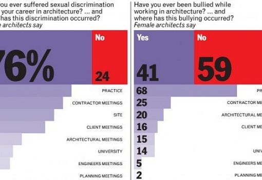Британский журнал Women in Architecture опубликовал статистику, в основу которой были положены результаты опросов. Выяснилось, что большая часть женщин, работающих в сфере архитектуры, хотя бы единожды становились жертвами насмешек со стороны мужчин. Женщины-архитекторы получают меньше их коллег-мужчин, выполняя ту же самую работу. Кроме того, бывают случаи недоверия со стороны клиентов. Вся статистика – по оригинальной ссылке.