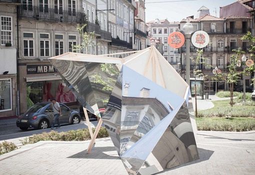 Нетривиальная интерпретация детской игрушки – калейдоскопа появилась в Порту (Португалия). Фасеточная скульптура с зеркальными поверхностями была сконструирована архитекторами FAHR 021.3. С помощью объекта Fragments дизайнеры попытались визуально углубить и расширить городские пространства, позволив взглянуть на них под необычным углом.